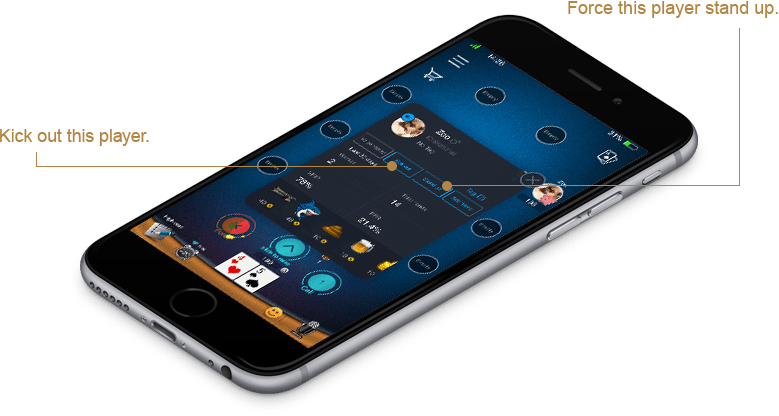 Kick out this player--Click ‘kick out’ can kick out this player after this hand. Once been kicked